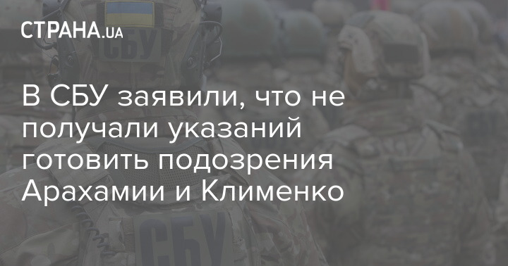 В Службе безопасности Украины заявили, что информация СМИ о подготовке подозрений главе фракции "Слуга народа" Давиду Арахамии и руководителю Специализированной антикоррупционной прокуратуры Александру Клименко не соответствует действительности.