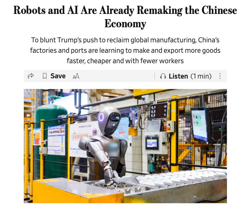 Китай ускоренно внедряет искусственный интеллект в производство и логистику, стремясь закрепиться как мировая фабрика на десятилетия вперед и надолго обогнать США.