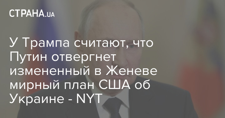 В администрации президента США Дональда Трампа считают, что глава Кремля Владимир Путин отвергнет мирный план после изменений, сделанных в Женеве.