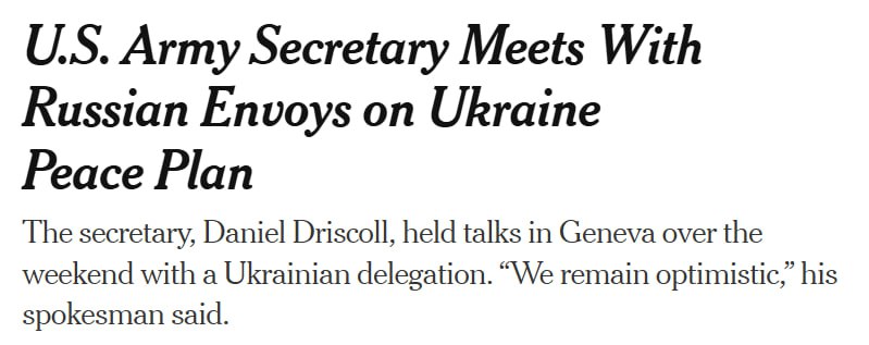 "Некоторые представители администрации Трампа полагают, что изменения в мирном соглашении, выработанные по итогам встреч американских и украинских переговорщиков в Женеве, могут привести к тому, что президент России Владимир Путин сразу же его отвергнет", – говорится в публикации.