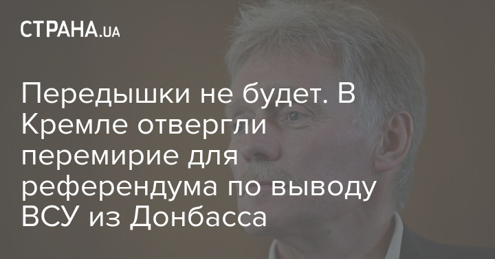В Кремле отвергли возможность объявления перемирия для проведения референдума по выводу Вооруженных сил Украины из Донбасса.