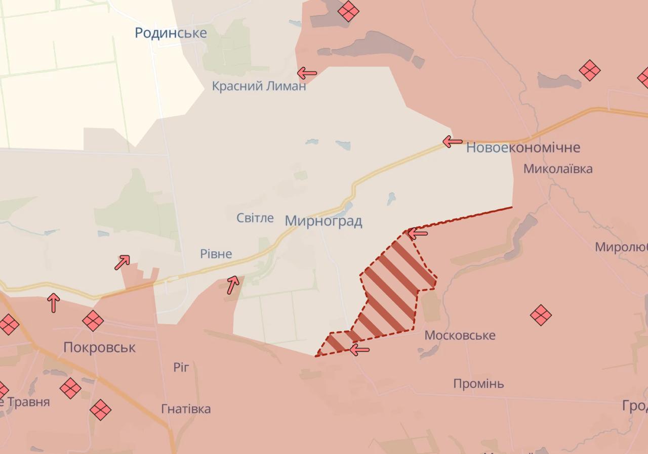 Также РФ продвинулась в Мирнограде, который весь находится в серой зоне, и в Волчанске.
