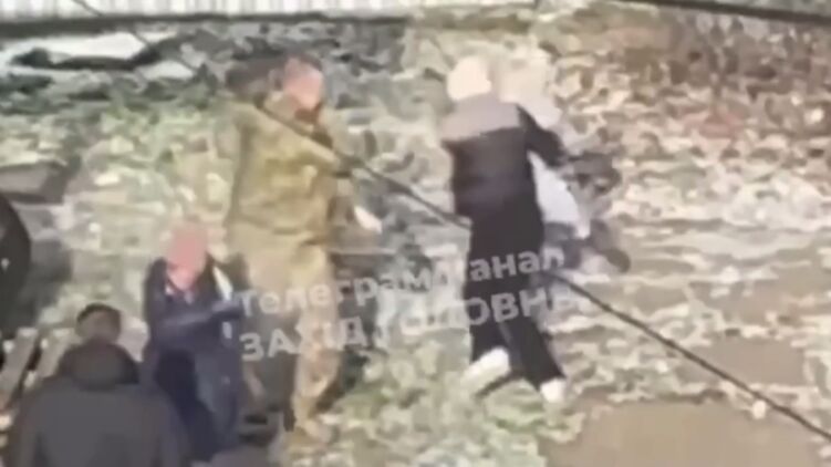 На появившихся в сети кадрах инцидента видно двух военкомов: один из них уводит человека в гражданской одежде к автомобилю, а второй отбивается от двух подошедших к нему женщин. Спустя несколько секунд ко второму подходит ещё одна женщина с ребёнком на руках, после чего сотрудник ТЦК тут же выпускает струю из баллончика в лицо ей женщине и малышке. Причем больше всего достается маленькой девочке.