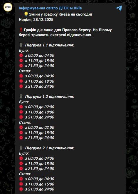12:40 Новые графики отключения света для правого берега Киева.