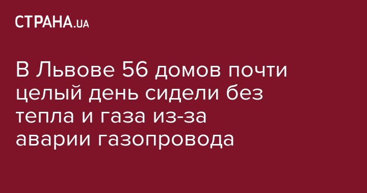В среду, 11 января,  56 домов  с самого утра в центре Львова остались без тепла в результате аварии на газопроводе диаметром 300 мм, сообщает пресс-служба Львовского горсовета.