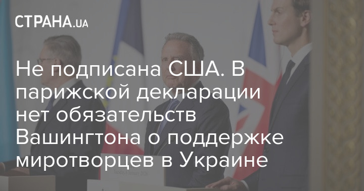 Из финального текста декларации, одобренной по результатам заседания "коалиции желающих" в Париже 6 января, была исключена фраза об обязательствах США поддержать многонациональные силы в Украине в случае повторного вторжения России. Кроме того, США не стали эту декларацию подписывать.