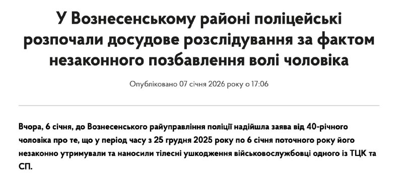10:31 Николаевская полиция сообщает, что расследует незаконное удержание и избиение мужчины в ТЦК.
