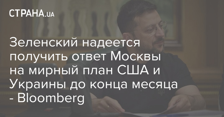 Зеленский надеется получить ответ Москвы на мирный план США и Украины до конца месяца - Bloomberg