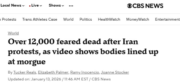 "После частичного восстановления телефонной связи источники CBS News из Ирана сообщили, что число погибших может исчисляться десятками тысяч", - пишет издание.