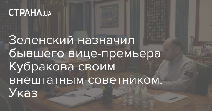 Президент Украины Владимир Зеленский назначил бывшего вице-премьера Александра Кубракова своим внештатным советником по вопросам инфраструктуры и взаимодействия с общинами.
