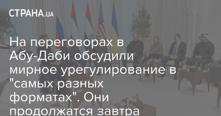 Делегации России, Украины и США на переговорах в Абу-Даби обсуждают урегулирование российско-украинского конфликта в "самых разных форматах".