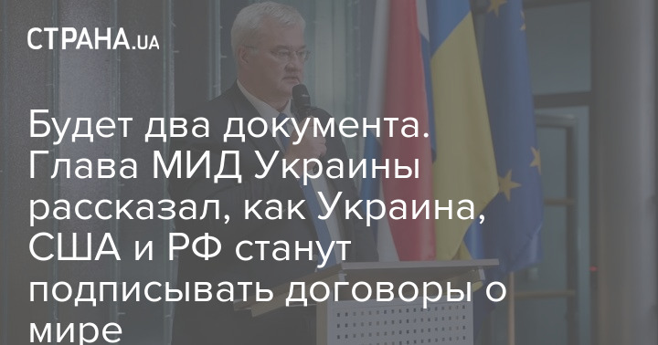 Министр иностранных дел Украины Андрей Сибига заявил, что конструкция мирного урегулирования предполагает два отдельных документа: 20-пунктное соглашение Украина подпишет с Соединенными Штатами (США), а отдельный документ США подпишут с Россией.