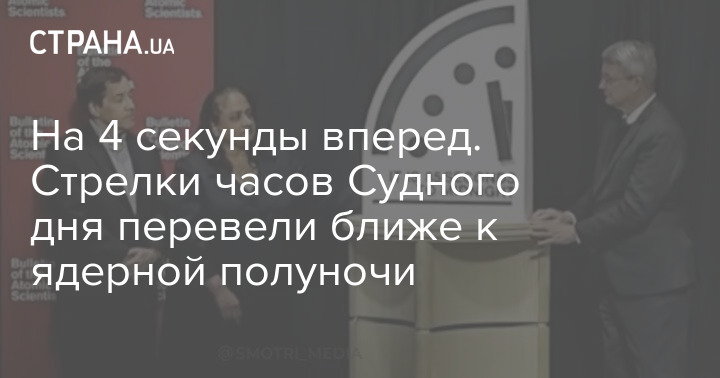 Стрелки часов Судного дня передвинули на 4 секунды к ядерной полуночи (вероятности ядерной войны - Ред.) - до самого высокого уровня в истории этого проекта - с 89 до 85 секунд до полуночи.
