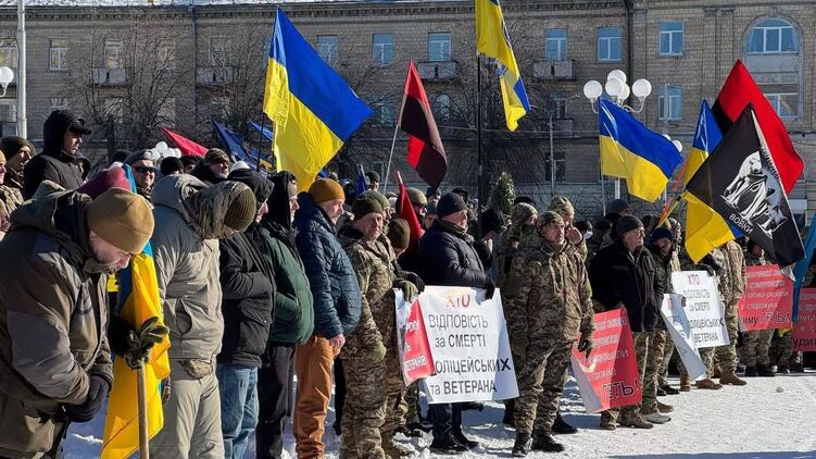 В Черкассах военные устроили митинг и потребовали расследовать расстрел ветерана ВСУ, убившего полицейских