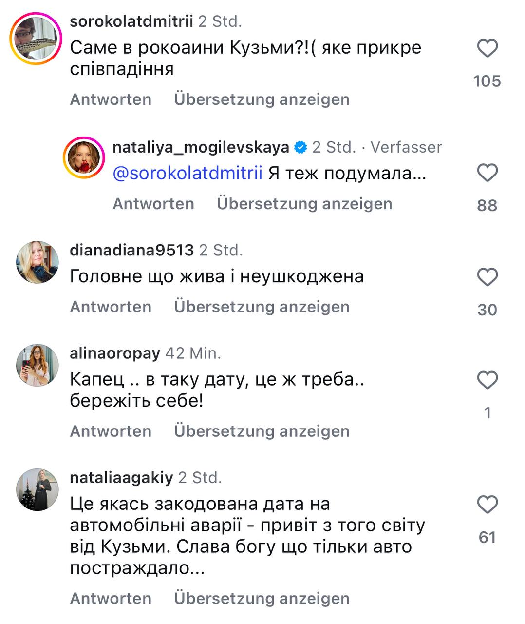В то же время подписчики Могилевской в комментариях под постом обратили внимание, что происшествие случилось в тот же день, когда в аварии 11 лет назад погиб украинский певец Андрей Кузьменко (Кузьма Скрябин).