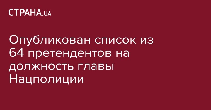 В Нацполиции обнародовали список из 64 кандидатов, подавших документы для участия в конкурсе на должность главы ведомства. Перечень кандидатов опубликован на сайте Нацполиции Украины.