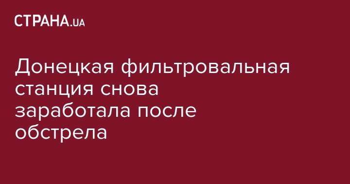 Сегодня, 14 января, около 13.00 работа Донецкой фильтровальной станции была восстановлена. Об этом сообщает пресс-служба предприятия КП "Компания "Вода Донбасса".