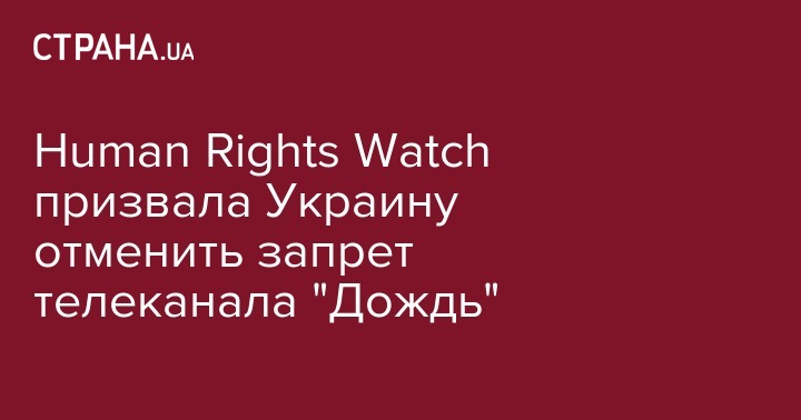 Human Rights Watch призвала Украину отменить запрет телеканала "Дождь"