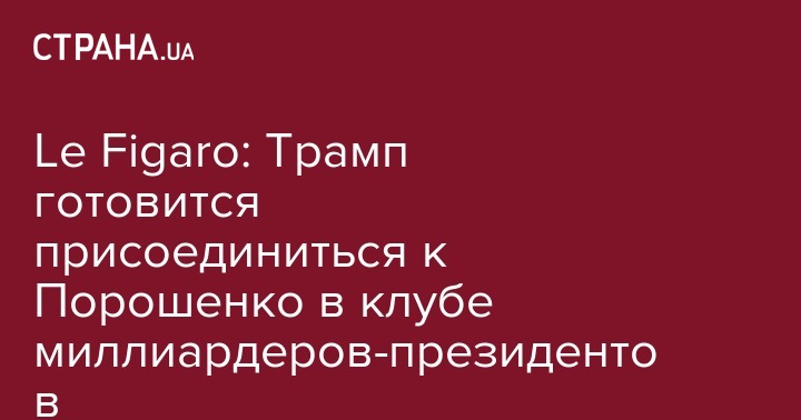 "Когда Дональд Трамп станет 45-м президентом США 20 января, он присоединится к Петру Порошенко, президенту Украины, прозванному "шоколадным королем", и вступит в закрытый клуб долларовых миллиардеров, ставших главами государства", - пишет Le Figaro.
