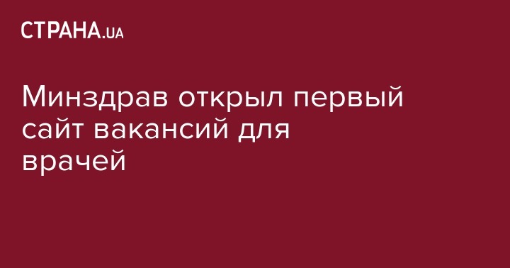 И.о. министра здравоохранения Ульяна Супрун сообщила, что в Украине появился сайт, на котором размещены объявления о вакансиях для медиков во всех регионах Украины. Об этом Супрун написала в Twitter.