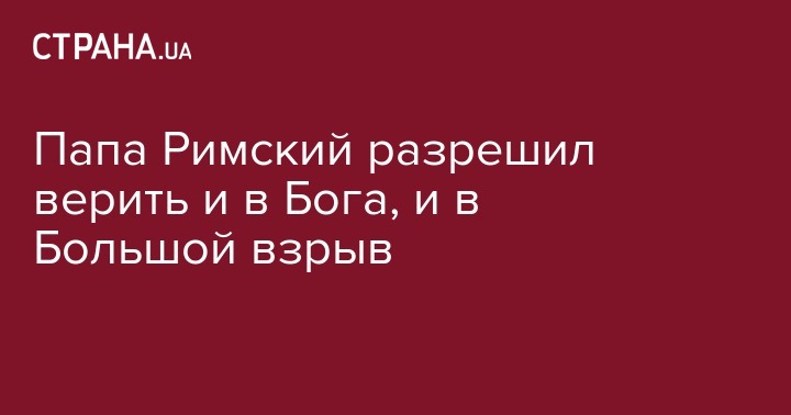 Папа Римский заявил, что можно одновременно верить и в Бога, и теорию Большого взрыва, который дал начало Вселенной и от которого зародилась жизнь. Об этом он заявил, общаясь с членами Папской академии наук, пишет The Independent.