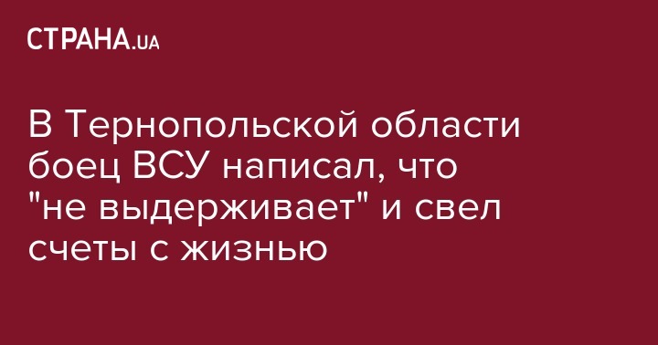 В Тернопольской области повесился военнослужащий. Мужчина несколько раз был в зоне боевых действий на Донбассе и готовился к очередной поездке в зону необъявленной войны, сообщает пресс-служба полиции Тернопольской области.