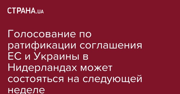 В агентстве сообщают, что предыдущая их новость оказалась некорректной, поскольку на самом деле голосование о ратификации Соглашения об ассоциации ЕС и Украины состоится в Голландии уже на следующей неделе.