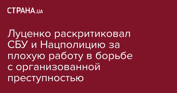 Генеральный прокурор Юрий Луценко раскритиковал Службу безопасности Украины и Национальную полицию, которые в прошлом году обезвредили только 5 организованных преступных групп. Об этом он заявил во время совещания в ГПУ, которое транслировал телеканал "112 Украина".