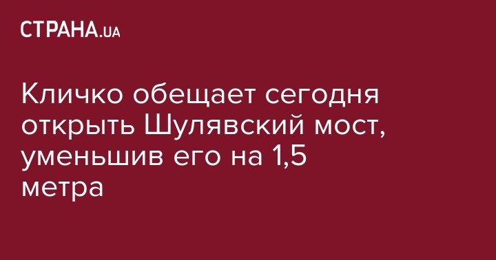 Кличко обещает сегодня открыть Шулявский мост, уменьшив его на 1,5 метра