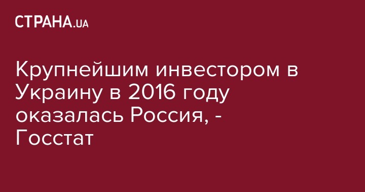 Крупнейшим иностранным инвестором в Украину за 2016 год оказалась Россия. За отчетный период, россияне вложили в украинскую экономику $1,667 млрд. По инвестированию в Украину они сравнимы со всеми странами ЕС вместе взятыми, передает Государственная служба статистики Украины (Госстат).