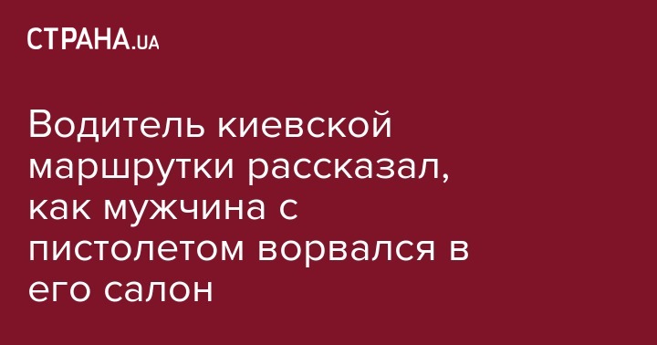 В четверг, 2 марта водитель киевской маршрутки рассказал об угоне его транспорта вооруженным неизвестным мужчиной в камуфляже. По словам маршрутчика, неизвестный, к тому же, забрал у него полтысячи гривен.