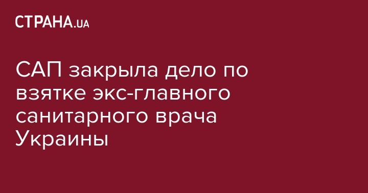 Специализированная антикоррупционная прокуратура (САП) закрыла уголовное производство в отношении бывшего главы Государственной санитарно-эпидемиологической службы Украины Святослава Протаса, которого подозревали в получения взяток в особо крупных размерах. Дело закрыли за отсутствием состава преступления, сообщил агентству "Интерфакс-Украина" его адвокат Алексей Шевчук.
