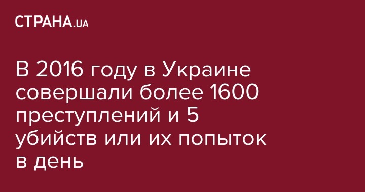 В 2016 году в Украине было зафиксировало 1 800 убийств и покушений на убийство. Таким образом, каждые сутки происходило 5 подобных преступлений.