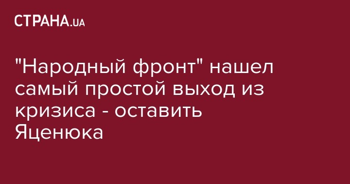 "Народный фронт" нашел самый простой выход из кризиса - оставить Яценюка