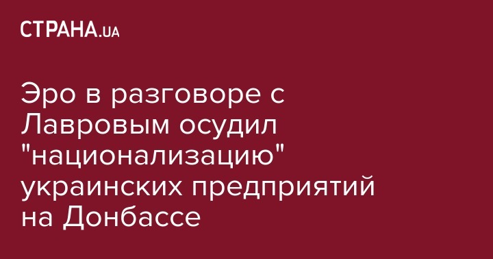 Эро также напомнил Лаврову, что за соблюдение режима прекращения огня и отведение вооружения ответственны все стороны конфликта.