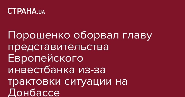 Президент Петр Порошенко перебил главу представительства Европейского инвестиционного банка в Украине Лилию Чернявскую, которая в своей речи неоднократно называла ситуацию на Донбассе "конфликтом на востоке Украины". Соответствующее видео в Facebook опубликовал пресс-секретарь президента Святослав Цеголко.