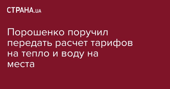 Президент Петр Порошенко поручил в сжатые сроки передать на места полномочия по установлению тарифов на тепло и водоснабжение, которое сейчас осуществляет Национальная комиссия, осуществляющая государственное регулирование в сферах энергетики и коммунальных услуг. Об этом гарант сообщил во время Совета регионального развития, передает "Укринформ".