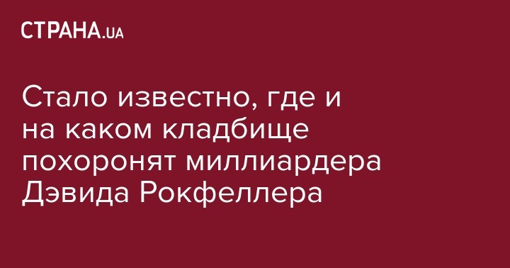 Миллиардера Дэвида Рокфеллера, умершего несколько дней назад, похоронят на семейном кладбище на территории Сонной Лощины.
