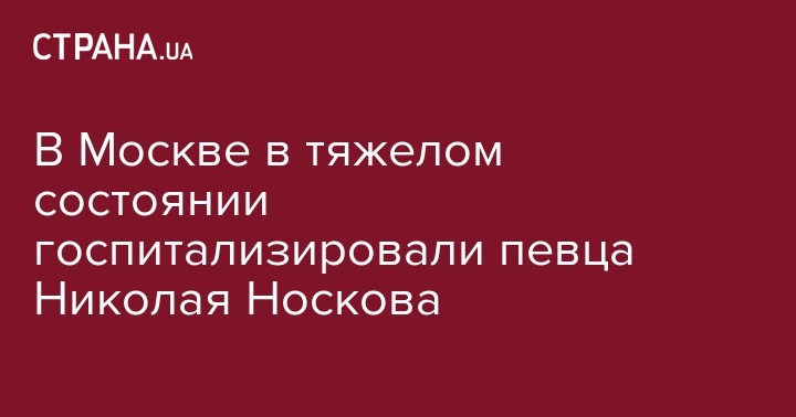 Российский певец Николай Носков в тяжелом состоянии был госпитализирован в московскую больницу. Об этом сообщает его пресс-служба.