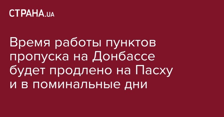 Время работы пунктов пропуска на Донбассе будет продлено на Пасху и в поминальные дни