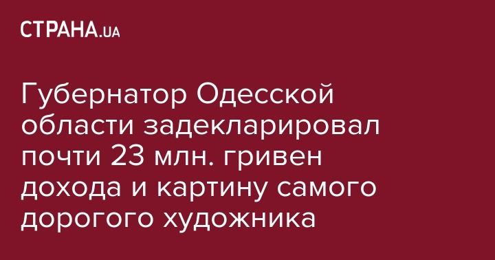 Губернатор Одесской области задекларировал почти 23 млн. гривен дохода и картину самого дорогого художника