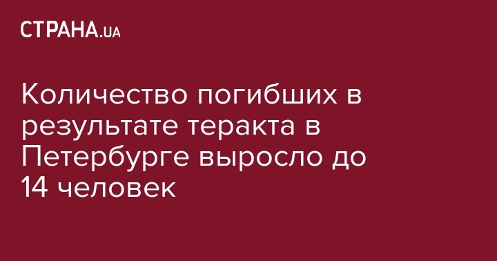 Количество погибших в результате теракта в Петербурге выросло до 14 человек
