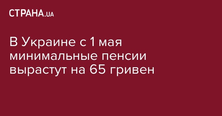 В Украине с 1 мая минимальные пенсии вырастут на 65 гривен