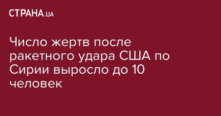 По меньшей мере уже 10 человек, в том числе мирные жители, погибли в результате ракетного обстрела Соединенными Штатами сирийской военной базы в провинции Хомс. Об этом сообщает ТАСС со ссылкой на телеканал Sky News Arabia.