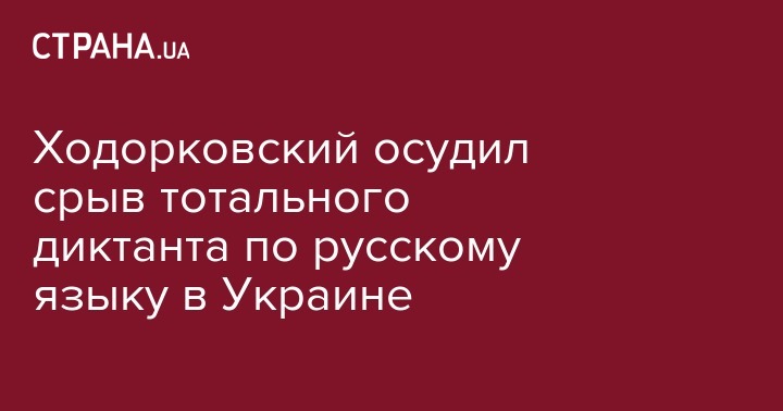 Проживающий за пределами России оппозиционер Михаил Ходорковский осудил срыв "Тотального диктанта" по всей Украине. Как он написал в микроблоге Twitter, разрыв культурных связей между соседями - решение недальновидное.