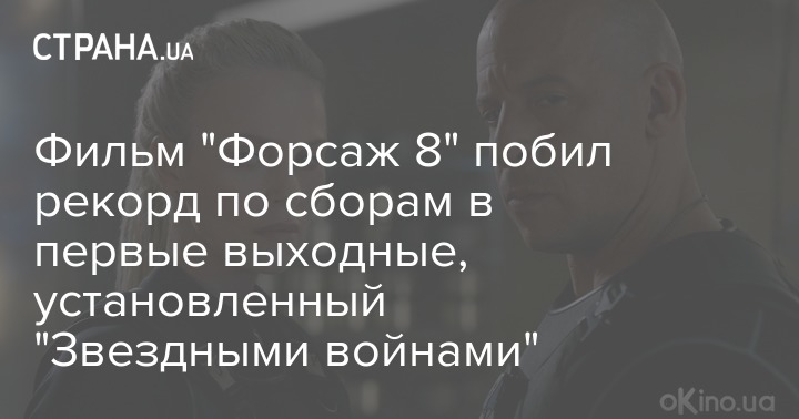 Восьмой фильм культовой франшизы "Форсаж" с героем Вина Дизеля стал рекордсменом по кассовым сборам в первые же выходные мирового проката, собрав $532,5 миллионов. Об этом сообщает ВВС.
