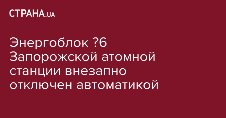 Энергоблок №6 Запорожской атомной станции внезапно отключен автоматикой