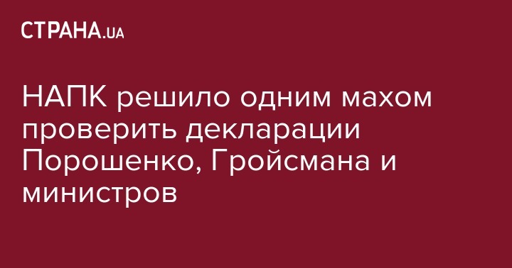 НАПК решило одним махом проверить декларации Порошенко, Гройсмана и министров