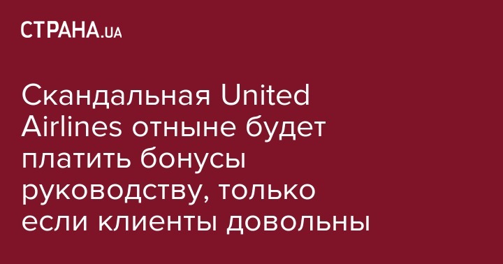 В американской авиакомпании United Airlines после скандального инцидента с силовым выволакиванием пассажира с рейса изменили систему выплат бонусов руководству - они теперь будут привязаны к удовлетворенности клиентов предоставленными услугами. Об этом сообщает ВВС.