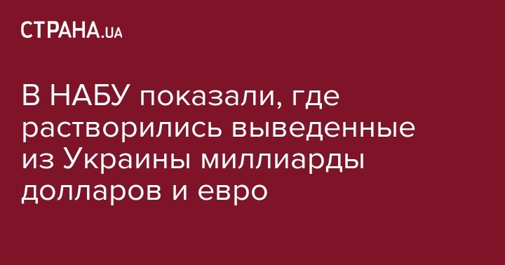 В Германии и Испании подозреваемые в выводе средств покупали элитную недвижимость. В Швейцарию было выведено €3,2 млн, Австрии – 2 миллиардов гривен и $10,8 млн, а на Британские Виргинские острова вообще было выведено $19, 693 млн. В общем, детективы НАБУ нашли "след" украинской коррупции в 41-й стране мира.